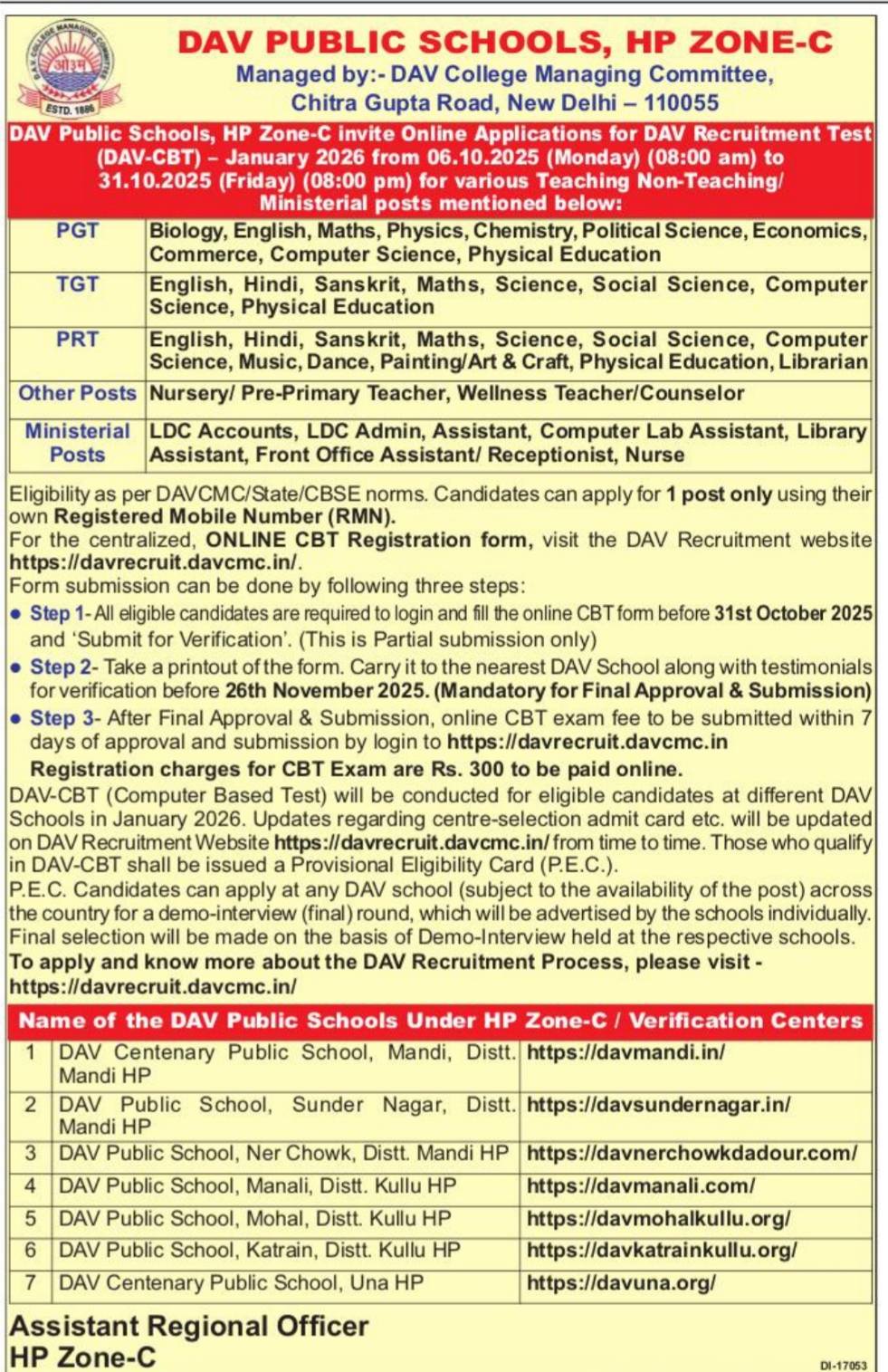 Interested candidates are encouraged to apply before the deadline and be a part of the DAV family committed to excellence in education.